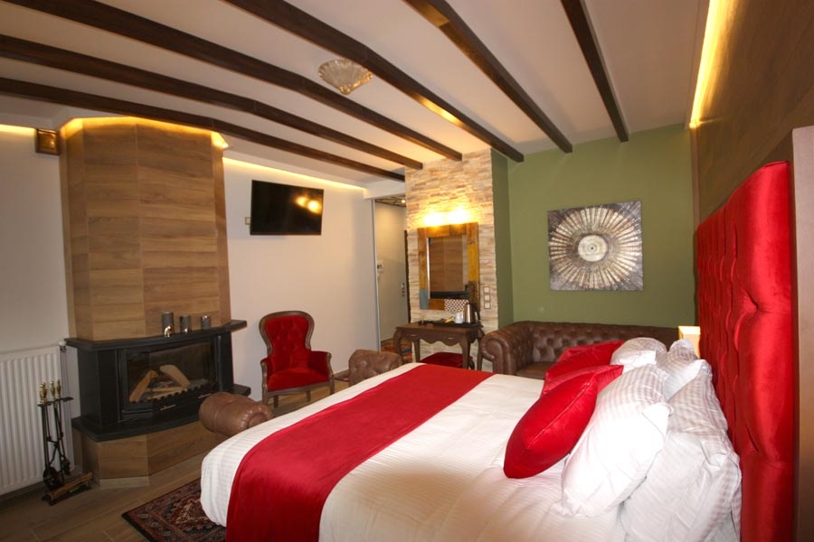 Suites have Jacuzzi overlooking the Pindos Mountains, hydromassage cabin, steam bath and sauna, fireplace.