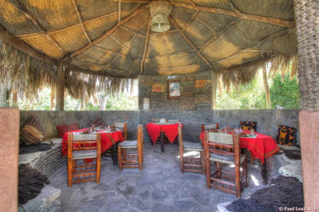 Swimming pool, garden, lounges to relax in and excellent views across the nearby Palmeraie and beyond. Baha Baha serves traditional Moroccan cuisine made with organic products. Guests can dine in the straw hut or in the dining room by the fireplace. A continental breakfast is served daily. They also have a small eco-museum and a library with regional and cultural themed books for guests to read about the region.