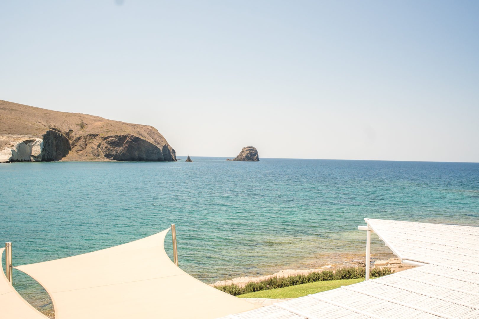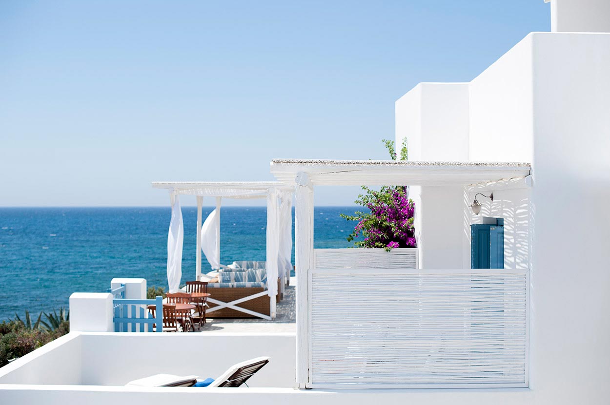 The luxury Melian Boutique Hotel & Spa sits at the water’s edge in the resort of Pollonia. Small, intimate hotel with excellent standards.