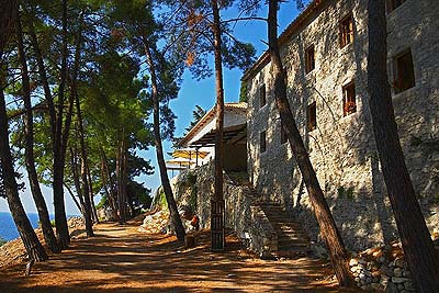 All around Parga every open space is covered with olive trees (still a major source of income for many families) and every garden and yard has orange and lemon trees. At the harbour fishing boats vie for a spot with the water taxis waiting to take you to Valtos Beach, out across the sea to Paxos or to a quiet spot of your own along the coast. Behind these there is a wide choice of excellent tavernas and lively cafes and bars.