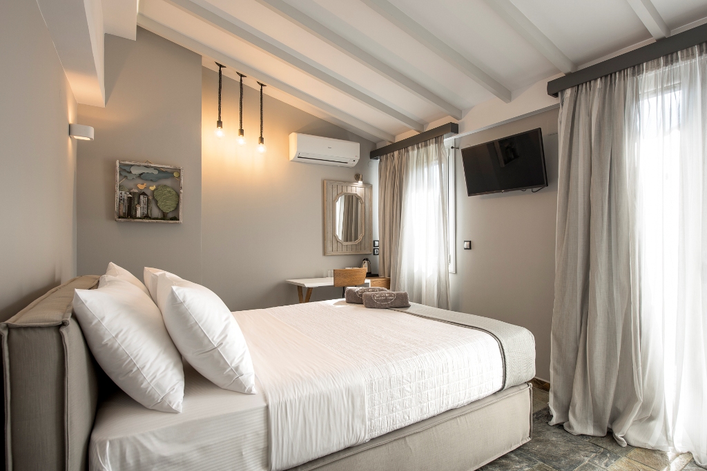 It offers 5 individually designed rooms (3 rooms and 2 suites), each with private balcony. Each room has en suite facilities with complimentary Apivita toiletries, air conditioning, television, tea/coffee-making facilities, a hairdryer, and slippers.