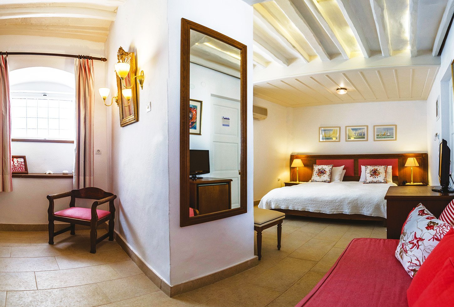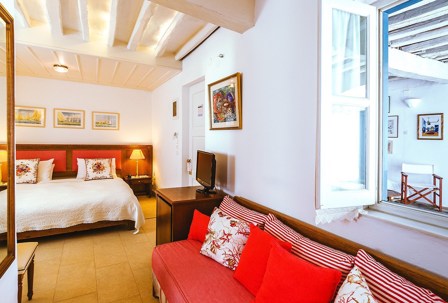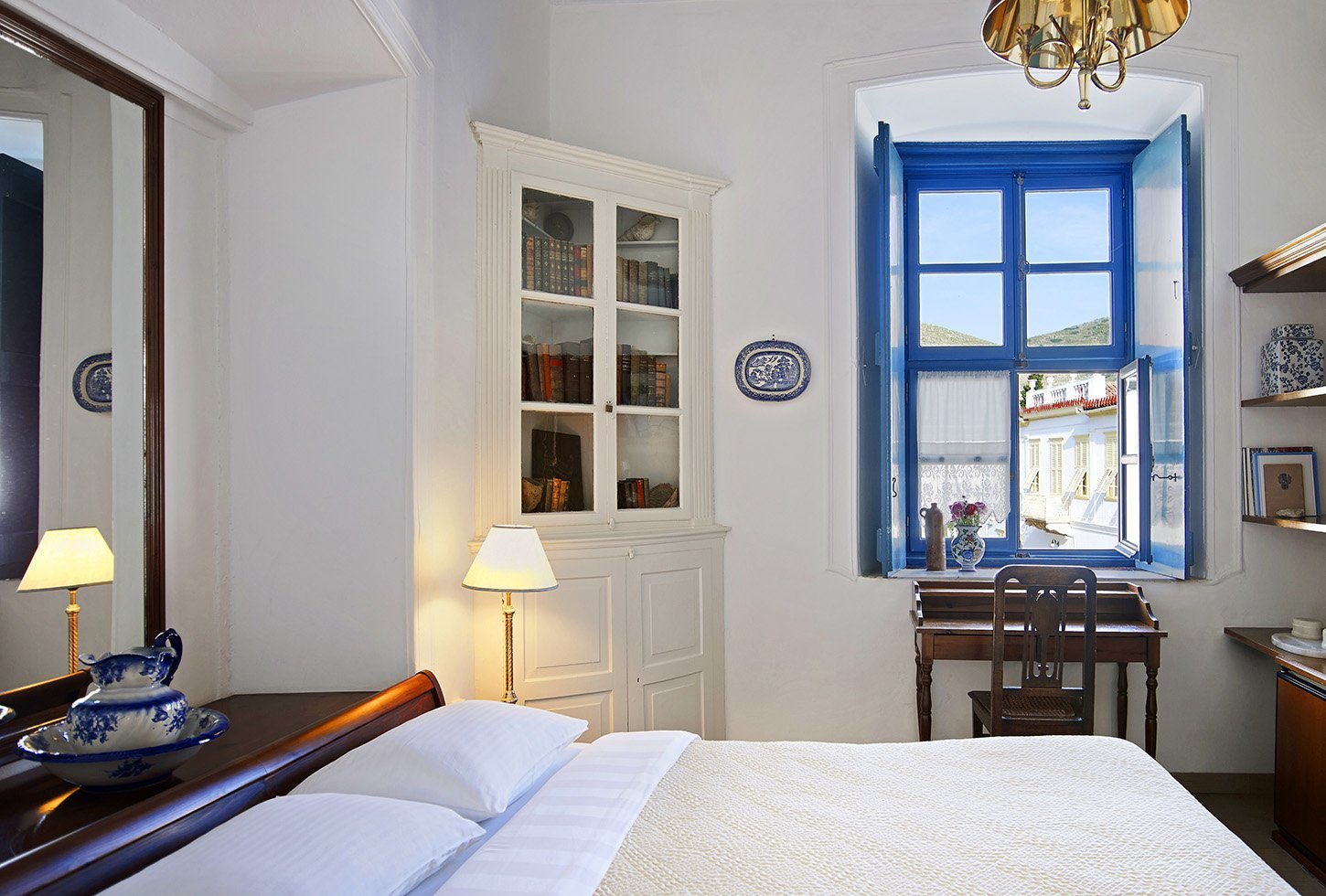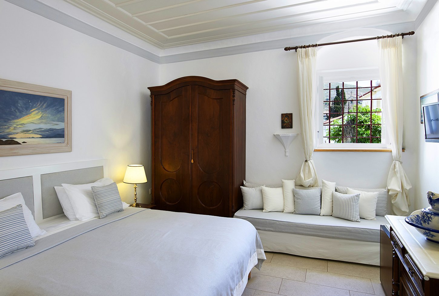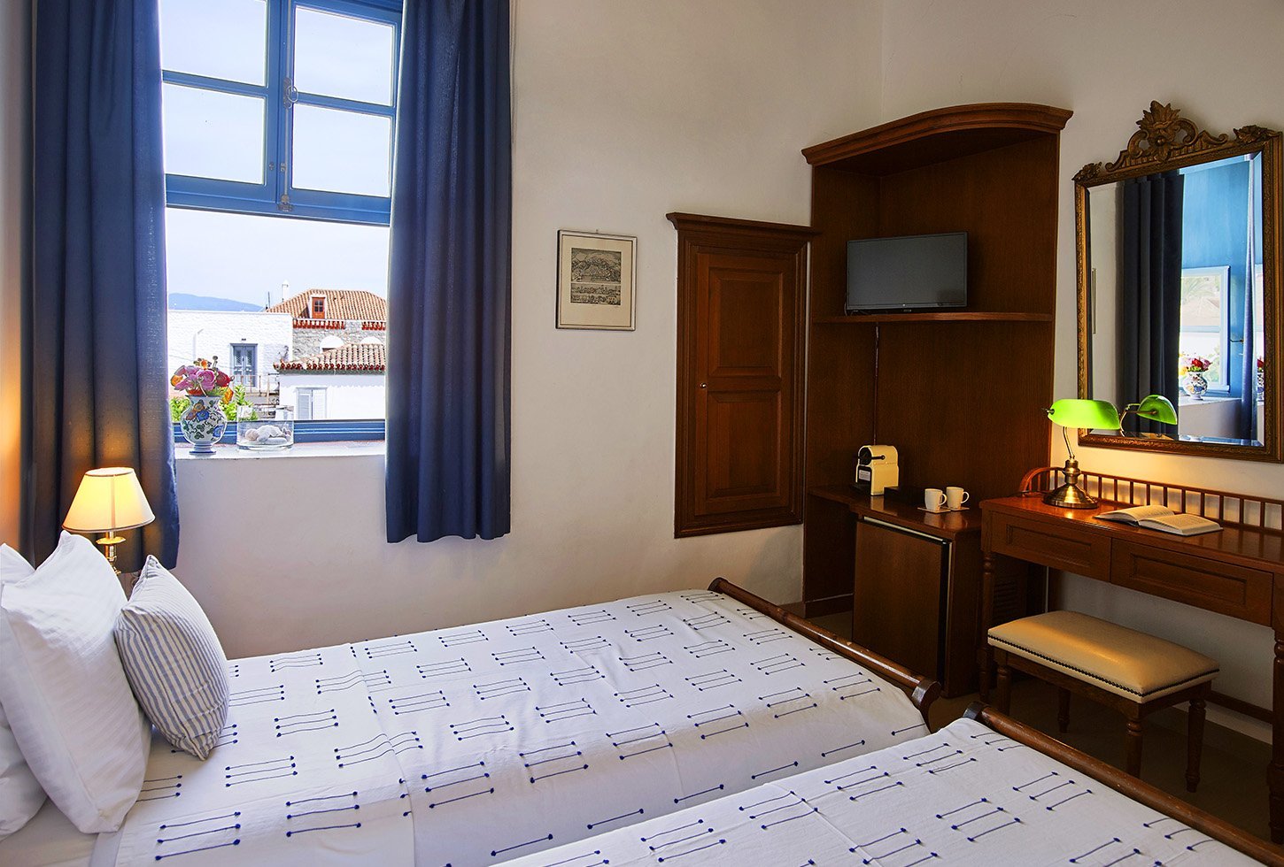 • Deluxe double room has views of Hydra town and surrounding hills from its imposing windows. It used to be the private office of Count Orloff who built the house in the 1790’s.