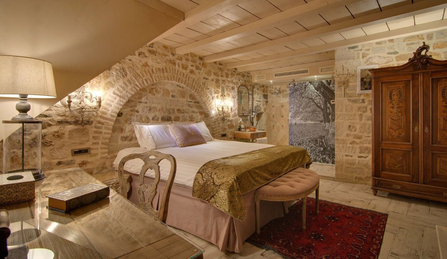 9 rooms, each with its own colour scheme and named after a benefactor from Epirus. All have air conditioning, wifi, TV, Nespresso machine, safety deposit box, minibar.
