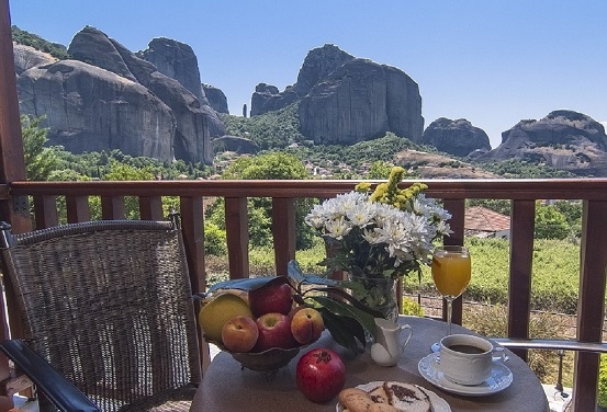 All 24 rooms are spacious and offer a magnificent views to the mountains and the Meteora rocks. They all have air conditioning, heating, wifi, satellite TV, safe, mini bar (fridge), telephone, hairdryer, telephone, and balconies with panoramic views.