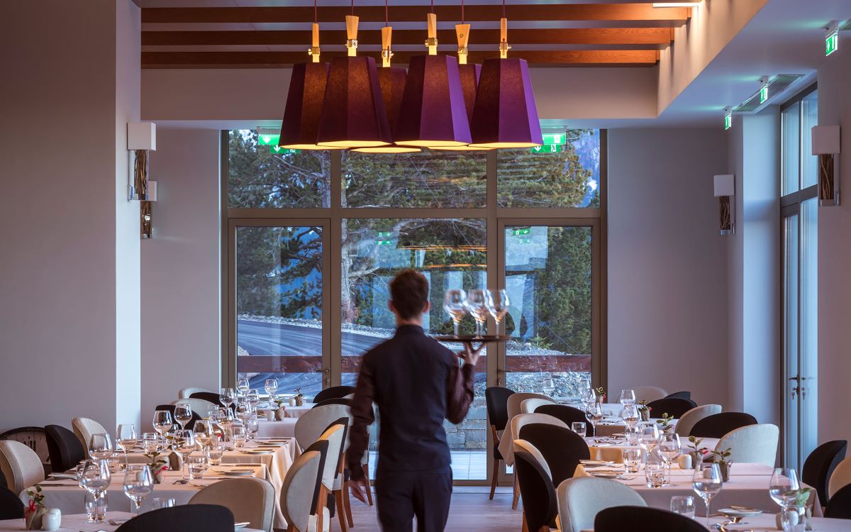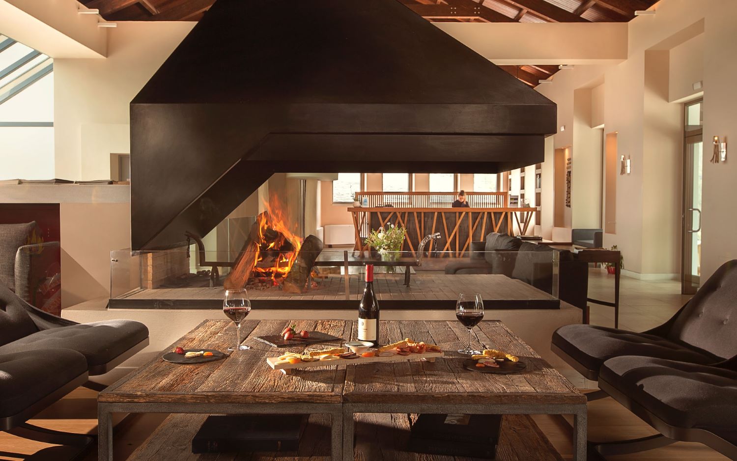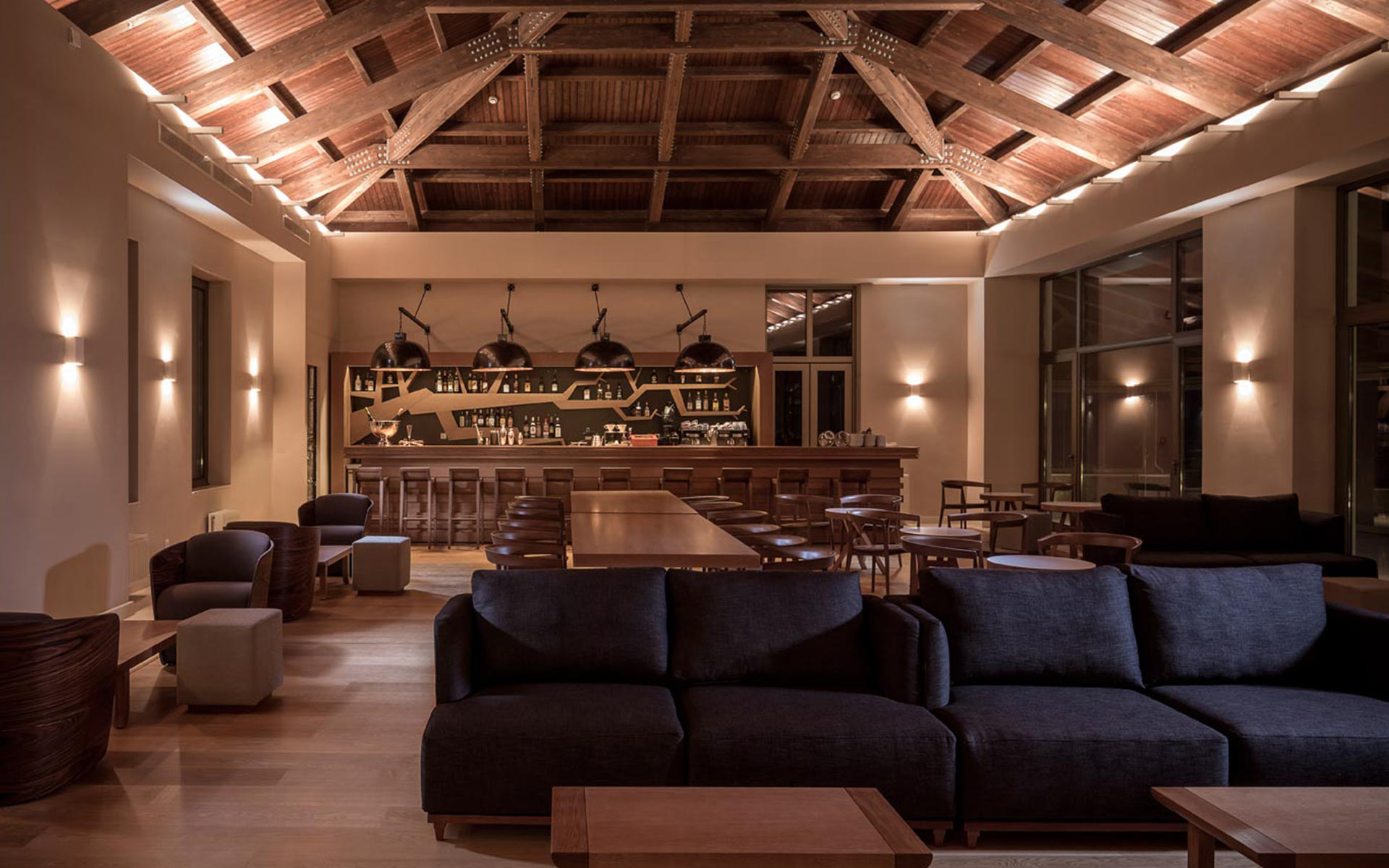 Reception; Restaurant Metsovo 1350m; lobby area with central fireplace; Pines private lounge & bar; Fontus Spa with beauty salon, sauna*, Jacuzzi* & hammam*, heated hydrotherapy tank; infinity pool (June- August); gift shop; gym; children’s area.
