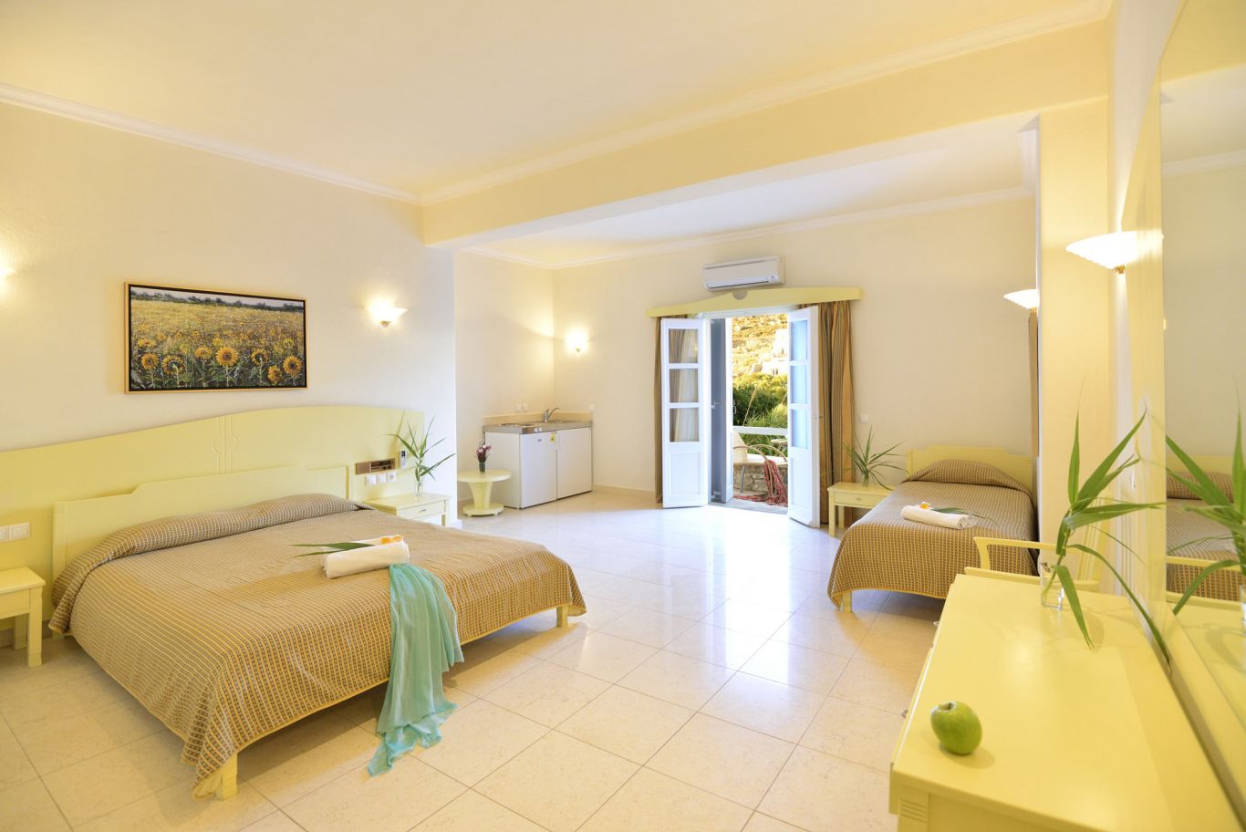 • Superior Suite – open-plan with a king size bed and two single beds. Sleeps 4