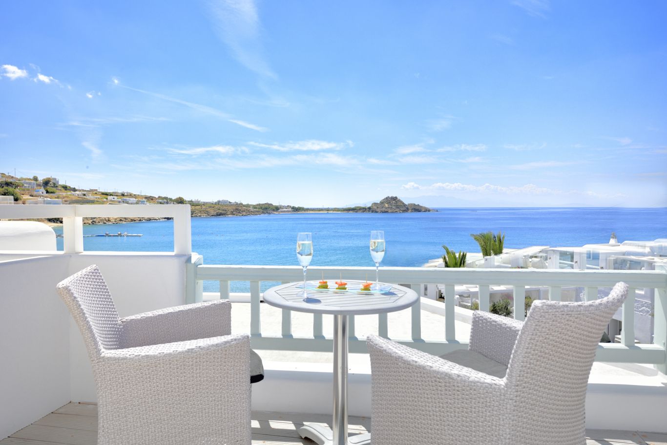 A few steps away from Platis Gialos Beach and only a short bus ride to Mykonos Town lies the beachfront Petinos Hotel.