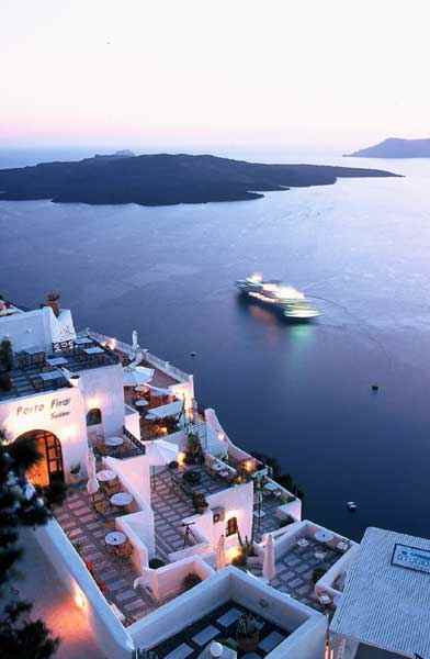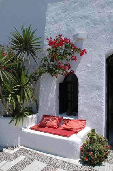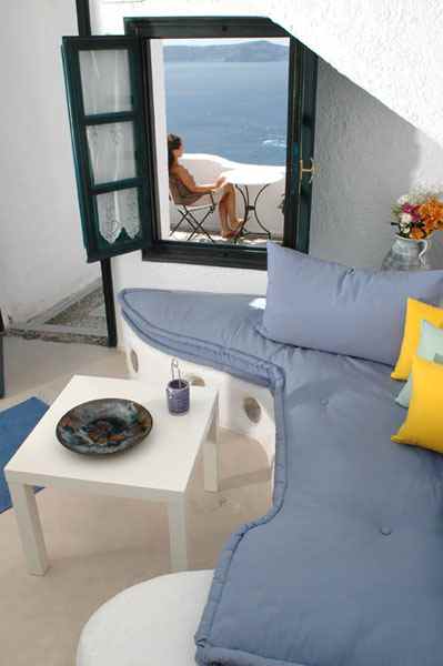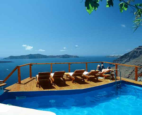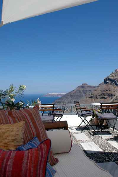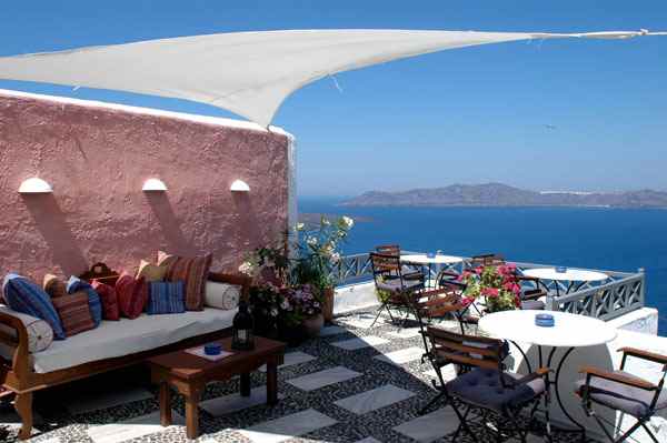 Perched on the hillside in a quiet location the Porto Fira Traditional Suites enjoy panoramic views of the bay, the port and the caldera.