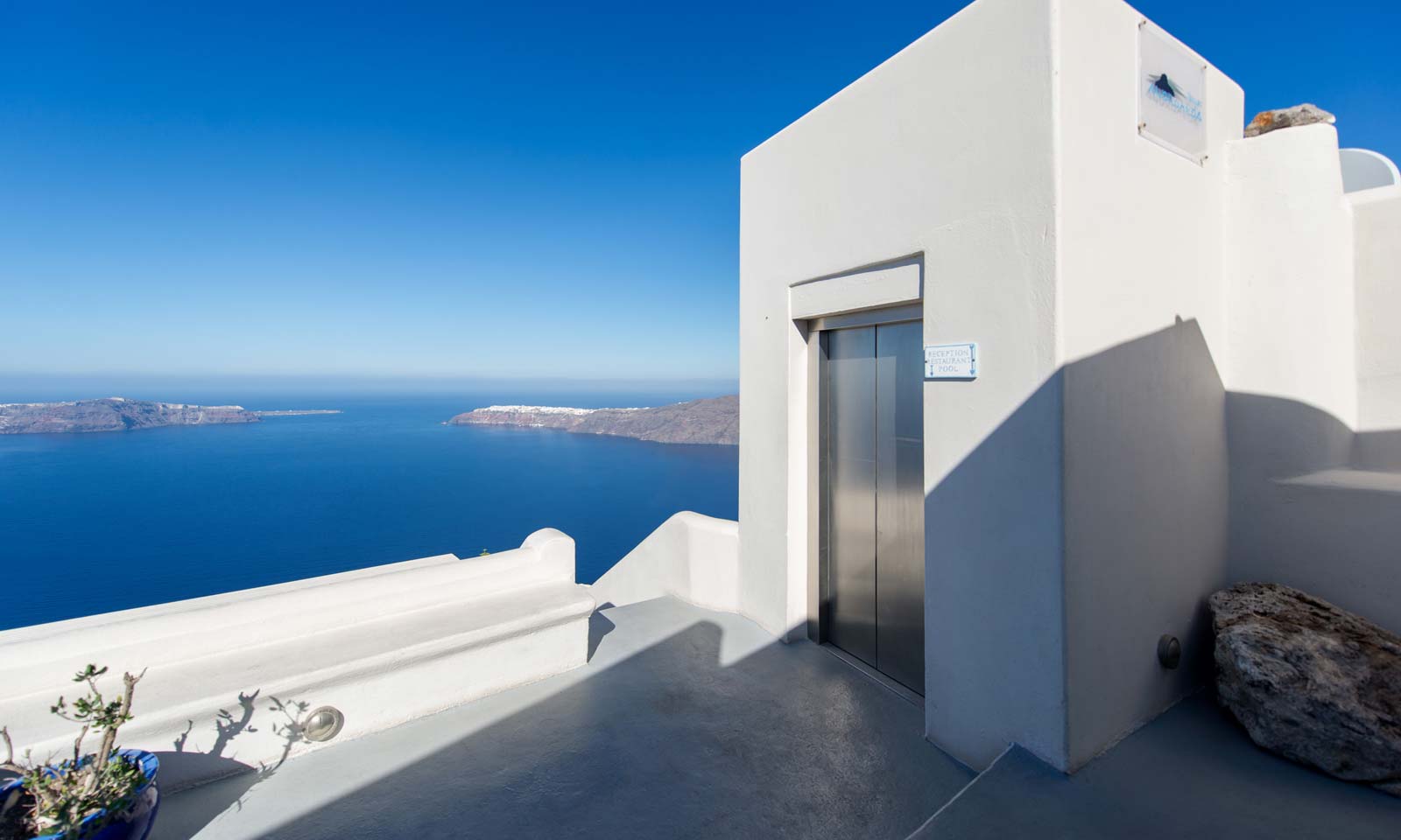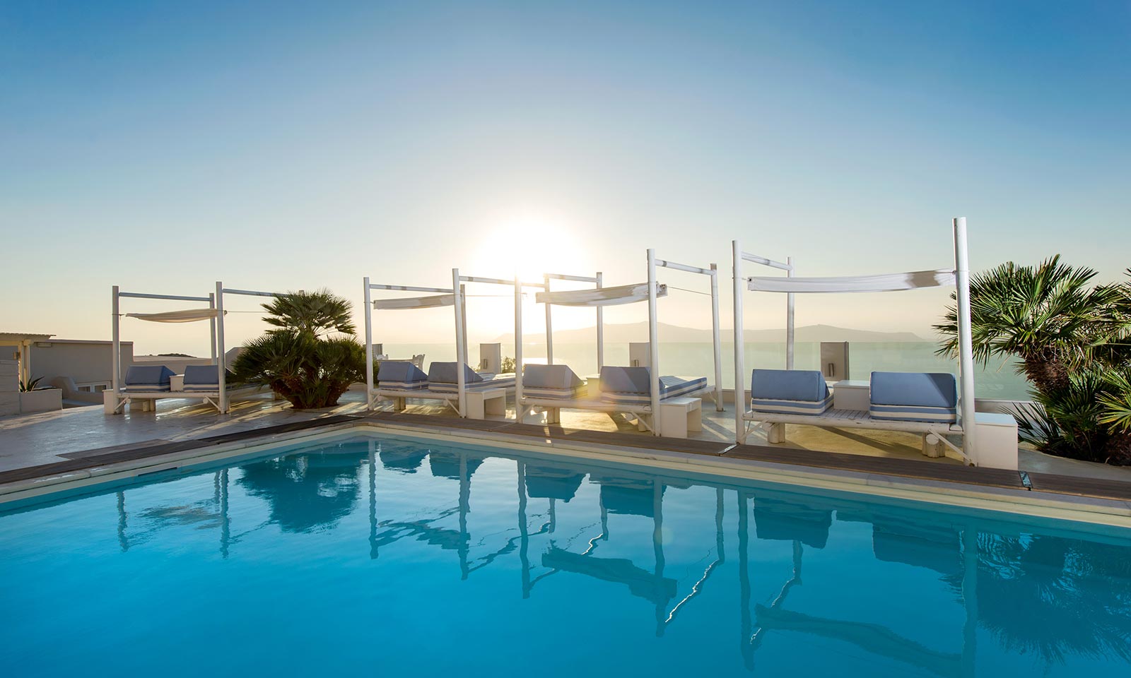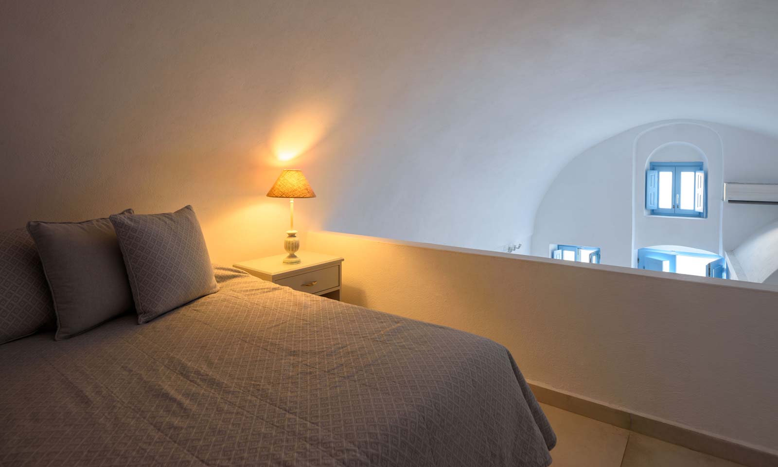 - Honeymoon Suite - one bedroom with double bed, one sofa bed in the living room, private large veranda with dining area and outdoor heated plunge pool with caldera view. A la carte breakfast is served daily in the suite with no time limitations.
