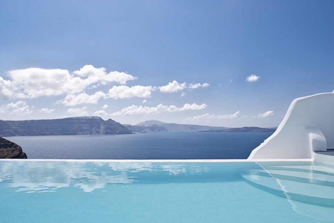 - Infinity Pool Suite: Designed in a size of more than 80 m2 and featuring a spacious veranda with private infinity outdoor pool (40 m2), Jacuzzi, sun loungers, open closet, Jet Shower ,the Pool Suite is the ideal choice for luxury accommodation. Endless moments of pleasure and relaxation with a stunning Aegean Sea and volcano view from the veranda await you. This living space is designed for guests looking for exclusive and convenient luxury, because the space stands out for its supreme comfort and delightfully minimalistic design. The ultimate escape…