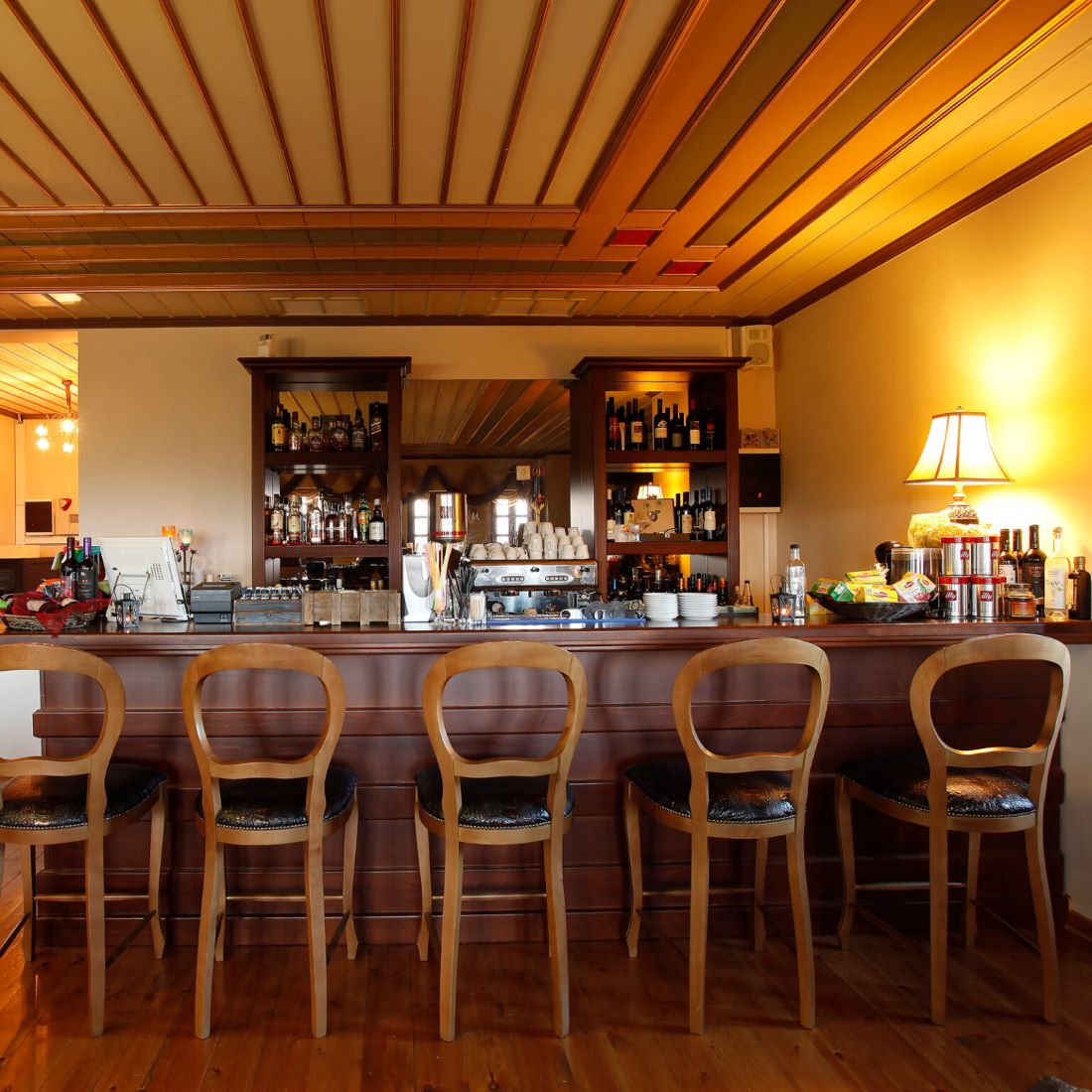 Wifi throughout, coffee bar, fireplace, restaurant, games room, parking.